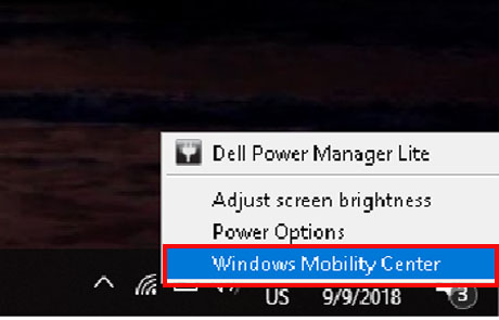 Bước 1: Click chuột phải vào biểu tượng pin Latop ở góc màn hình > Windowns Mobility Center.